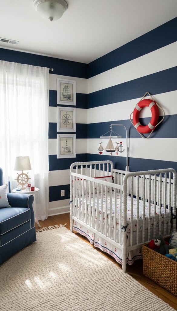 Set sail into a world of maritime charm with a classic nautical theme. This timeless style often features a palette of navy blue, crisp white, and touches of red, evoking the spirit of the open sea.