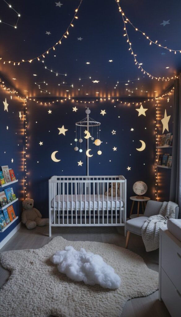 Inspire dreams of the cosmos with a celestial-themed nursery, transforming the room into a magical starry night sky.
