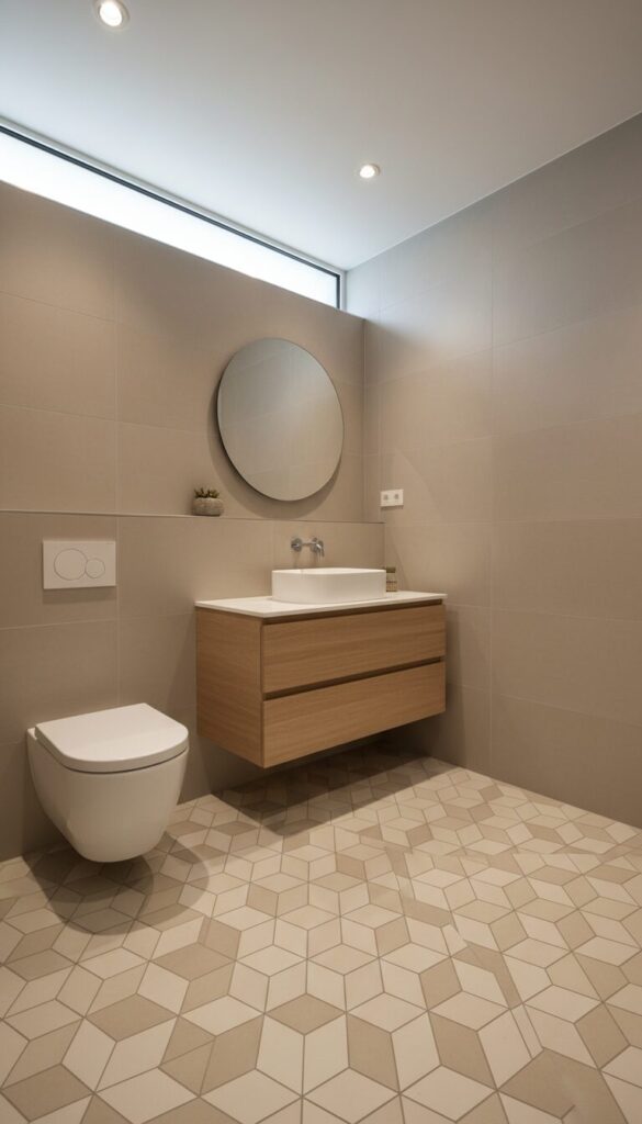 - Patterns elevate simple tiles: Herringbone, geometric mosaics, and hexagon layouts transform basic beige into architectural statements with subtle sophistication.