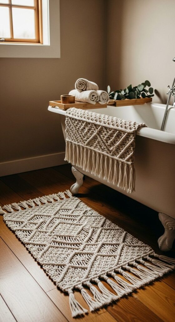 6. Macramé Bath Mat with Tassels