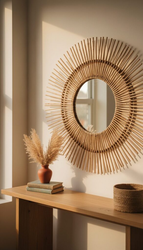- Natural materials define boho mirrors: Rattan, macrame, driftwood, jute, bamboo, and seagrass bring organic textures and artisanal craftsmanship that embody bohemian aesthetics perfectly.