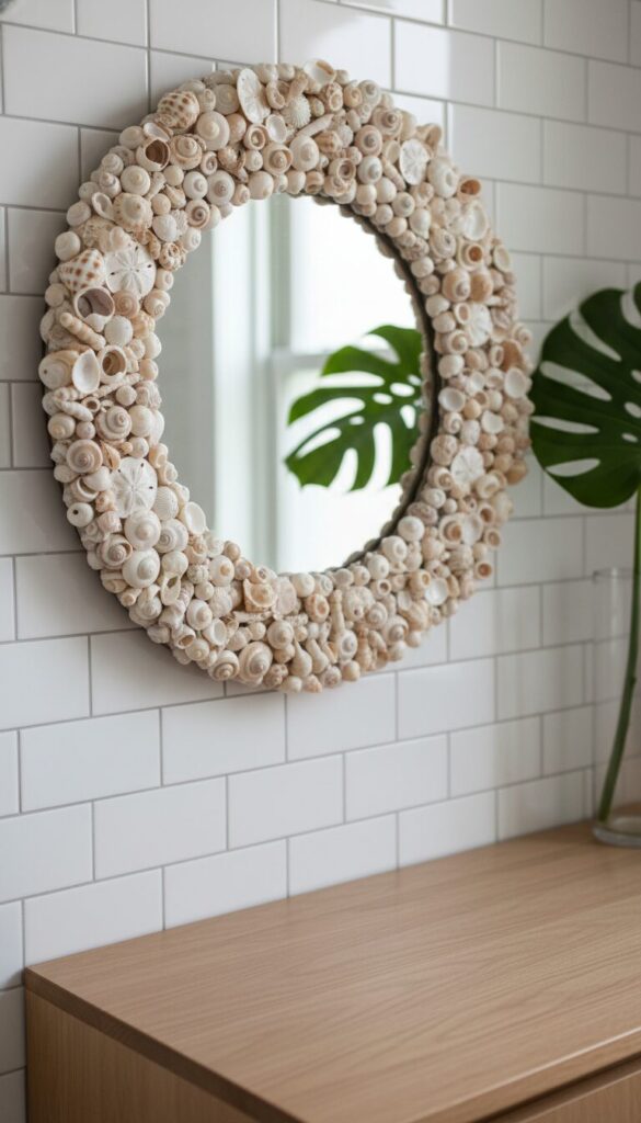 - Unique embellishments add personality: Shells, beads, dried florals, and Moroccan tile inlays transform functional mirrors into one-of-a-kind artistic statements with global-inspired flair.