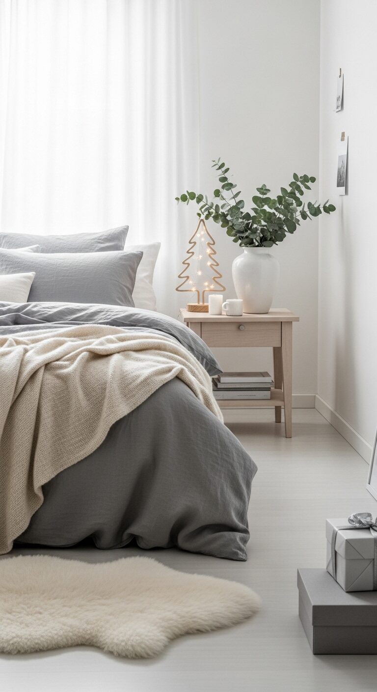 17 White & Beige Christmas Bedroom Ideas for a Serene Holiday Sanctuary