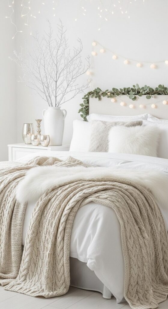 Your bedroom should be your personal winter retreat, a space where the festive spirit feels intimate and soothing rather than overwhelming.