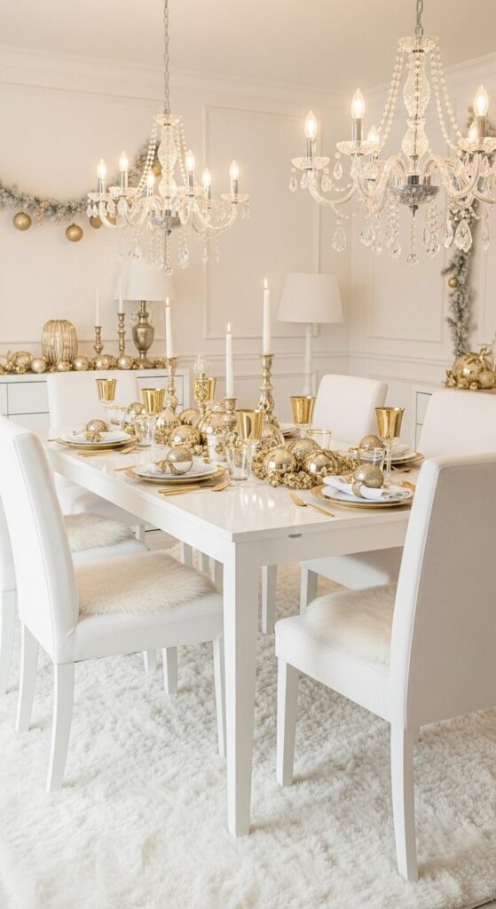 An air of refined serenity fills the room, blending purity with subtle opulence for holiday gatherings.