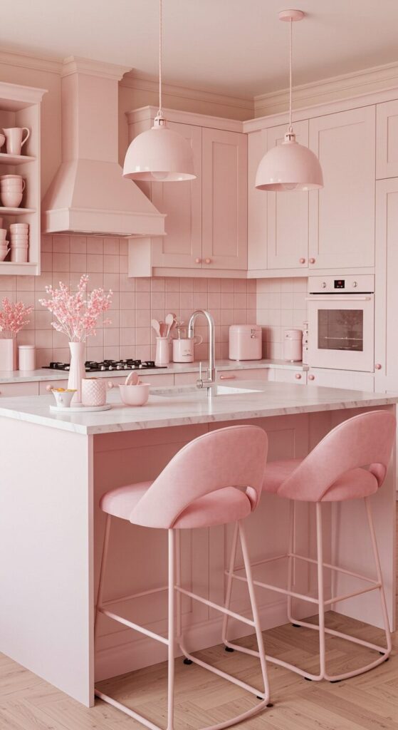 Pastel pinks offer gentle whimsy, wrapping your kitchen in a soft glow that makes holiday prep feel dreamy and delightful. Subtle shades soothe.