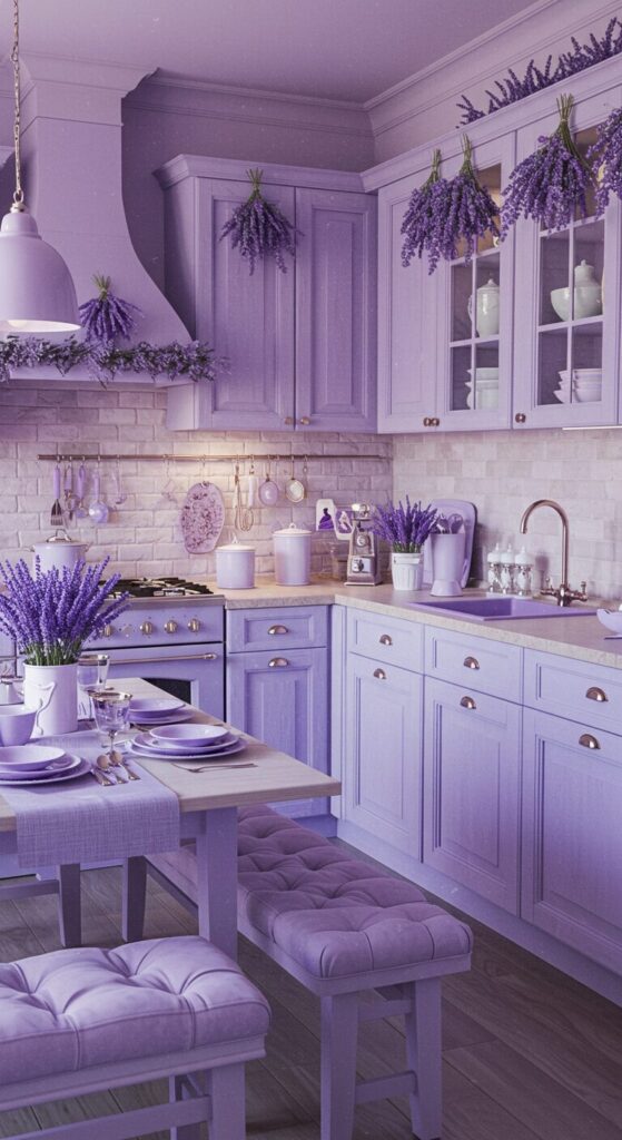 Lavender shades whisper serenity, turning your kitchen into a poetic space where holidays unfold with gentle, aromatic grace. Floral hints inspire.