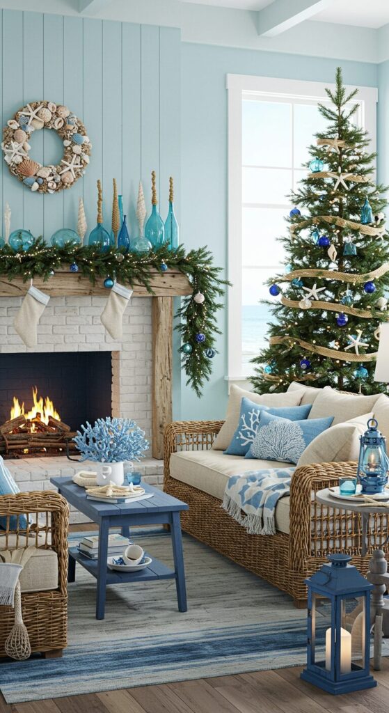 Rope-wrapped vases and bleached wood frames mingle with salt-kissed branches.