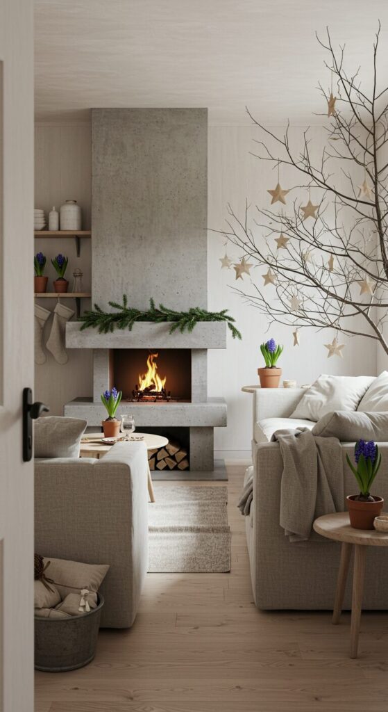 Soft wool garlands add warmth, evoking gentle emotional comfort.