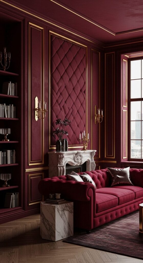 8. Maroon Velvet Lounge Reading Nook