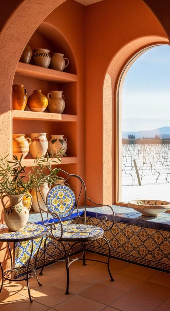 Overlooking tiled vistas in a warm alcove, this nook transports you to sun-kissed shores despite the frost.
