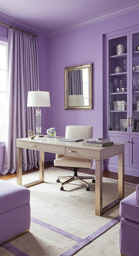 Lavender walls envelop your workspace in tranquility while stimulating creative thinking.