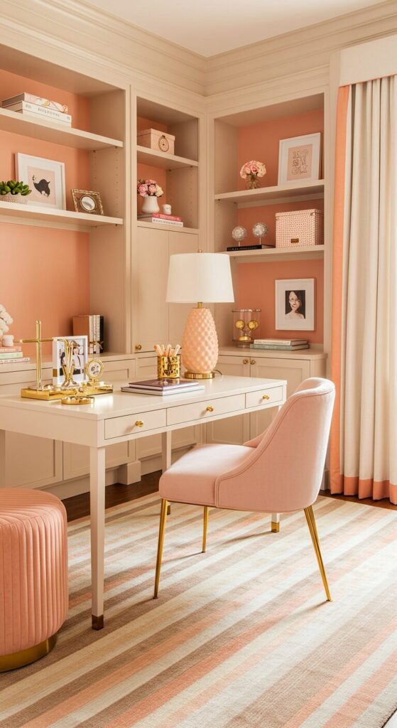 Warm peach tones create an energizing yet gentle environment perfect for productive days.