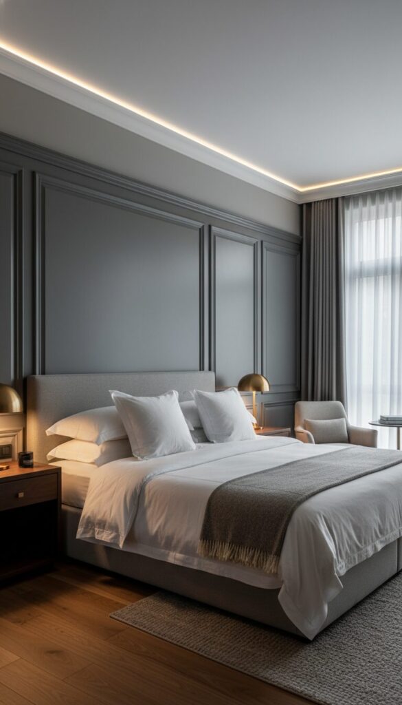 This design adds significant character and depth, making the bedroom feel more like a sanctuary. It can serve as a sophisticated backdrop for plush bedding and elegant furnishings.