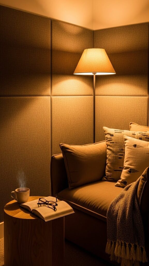 These panels add warmth, acoustic dampening, and a luxurious tactile quality to the space. Choose a fabric color and texture that complements your existing decor, creating a soft backdrop for a comfortable armchair and a good book.
