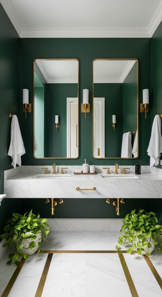 Whether you go bold with forest green and brass or keep things calm with Scandinavian simplicity, these ideas prove that shared bathrooms can be beautiful, practical, and something both users actually love.