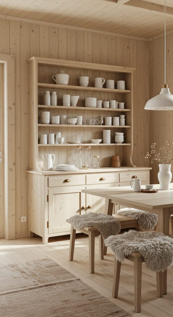 The space radiates hygge, with clean lines inviting quiet moments and warm connections.