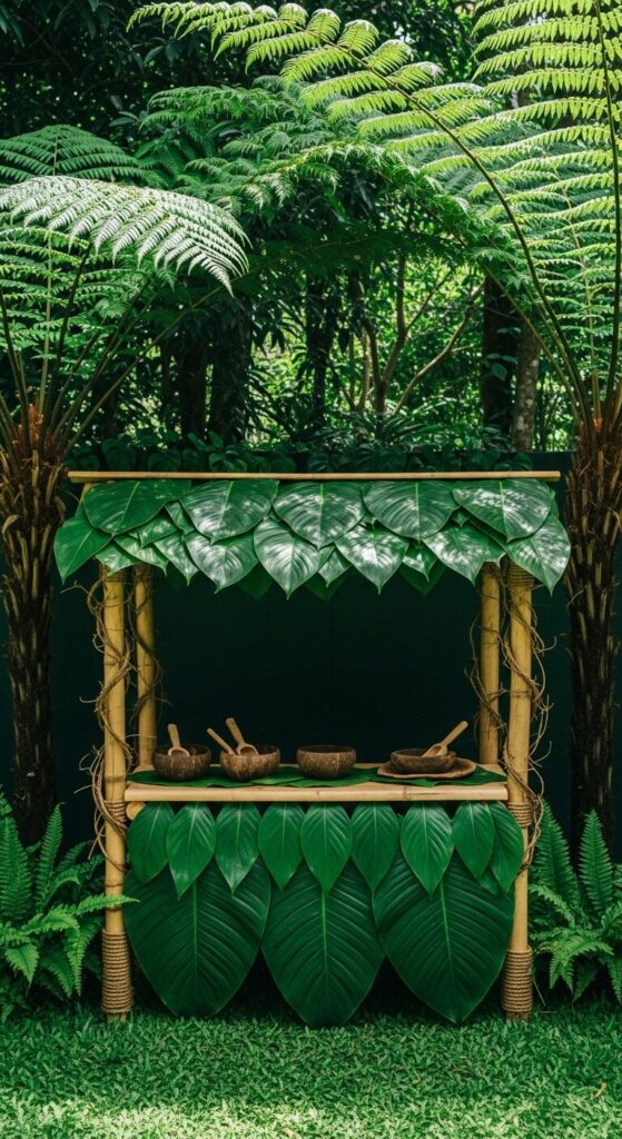 Gather fallen branches to lash together a frame, adding potted palms for instant jungle vibes.
