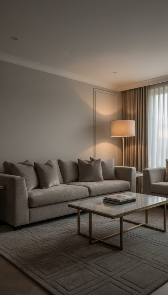 • Temperature mixing creates depth: Combining warm neutrals (cream, beige, taupe) with cool ones (grey, white) adds dimensional sophistication that single-temperature palettes can’t achieve.