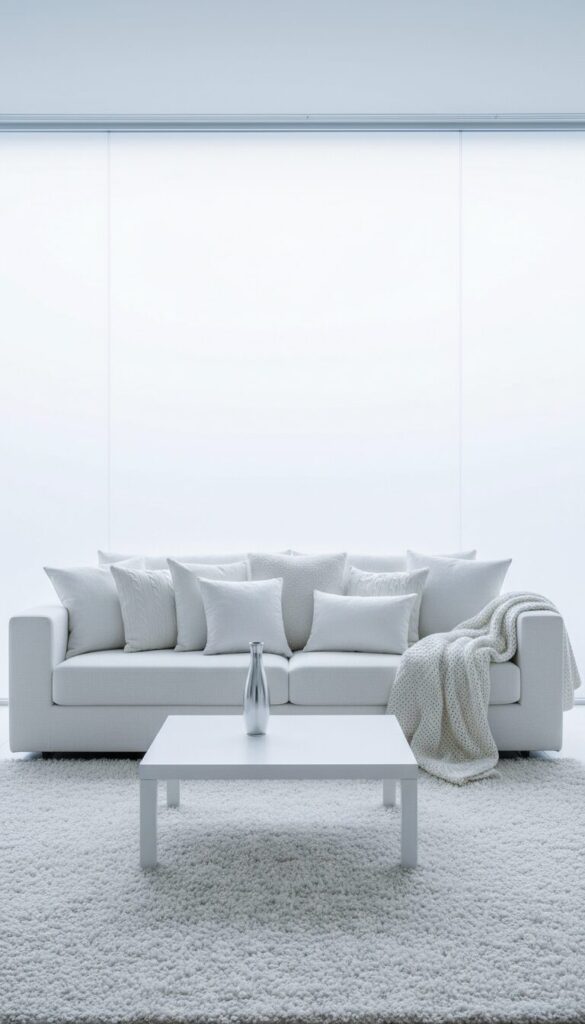 This approach uses off-whites, creams, and ivories to create an ethereal and incredibly bright space. Layering different white textures—from sheer linen curtains to fluffy rugs and upholstered furniture—prevents the room from feeling stark.