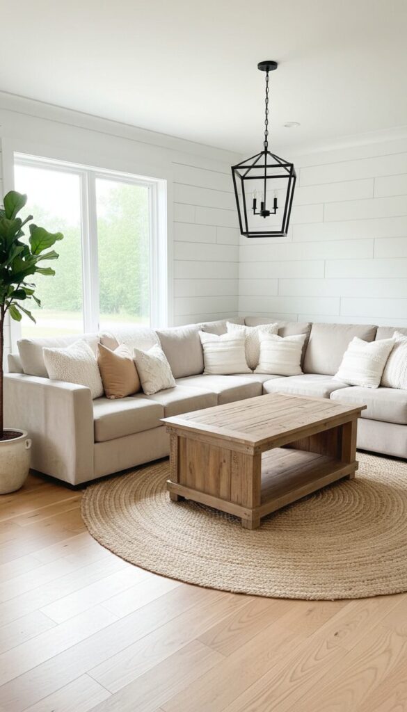 The result is a comfortable, inviting living room that feels both current and timeless, perfect for family gatherings.