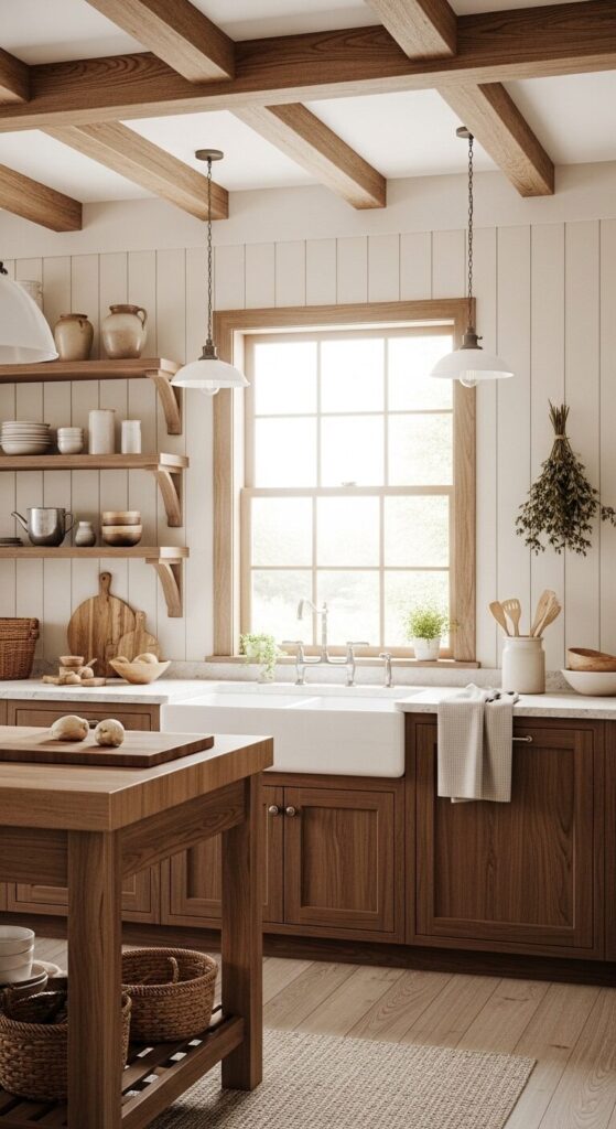 1. Rustic Farmhouse Walnut Kitchen