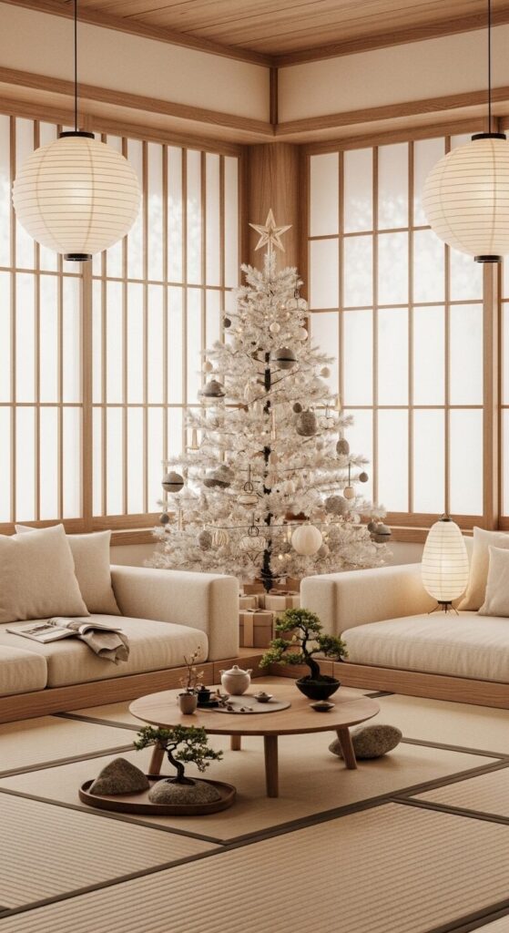 Arrange neutral elements mindfully, focusing on space to invite Zen into your holidays.