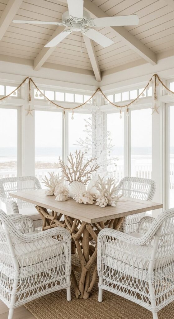 4. Coastal Serenity White and Beige Christmas Sunroom