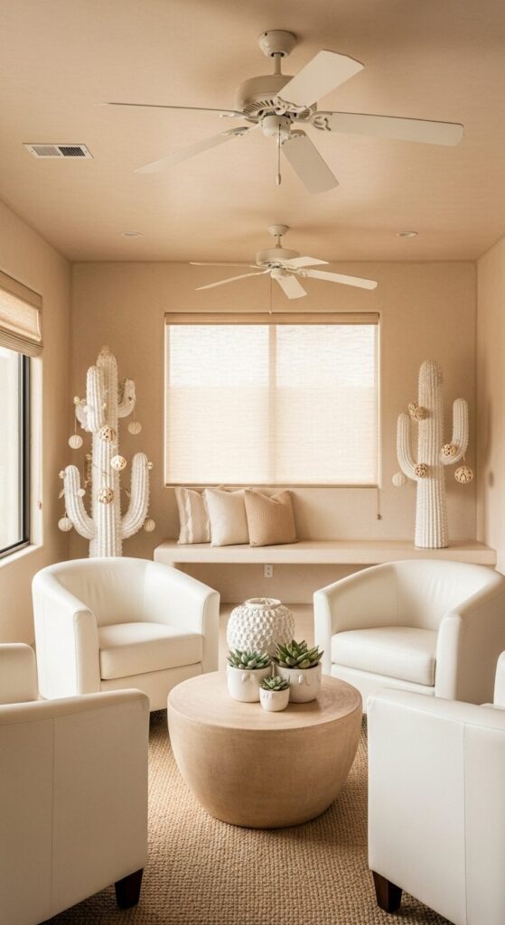 Incorporate cactus shapes and sandy tones for desert-inspired coziness.