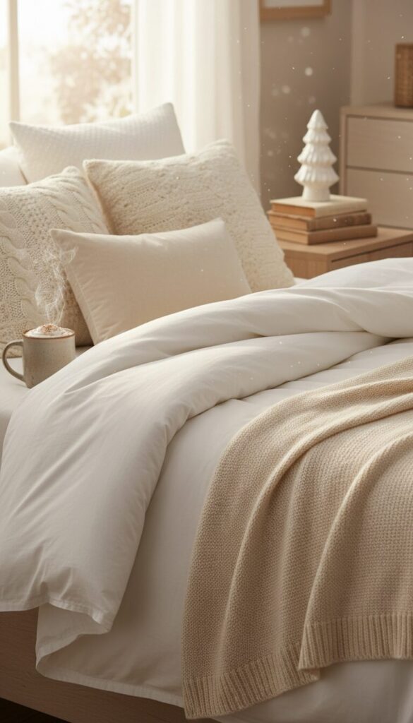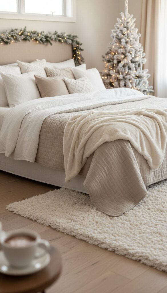 17 White & Beige Christmas Bedroom Ideas for a Serene Holiday Sanctuary