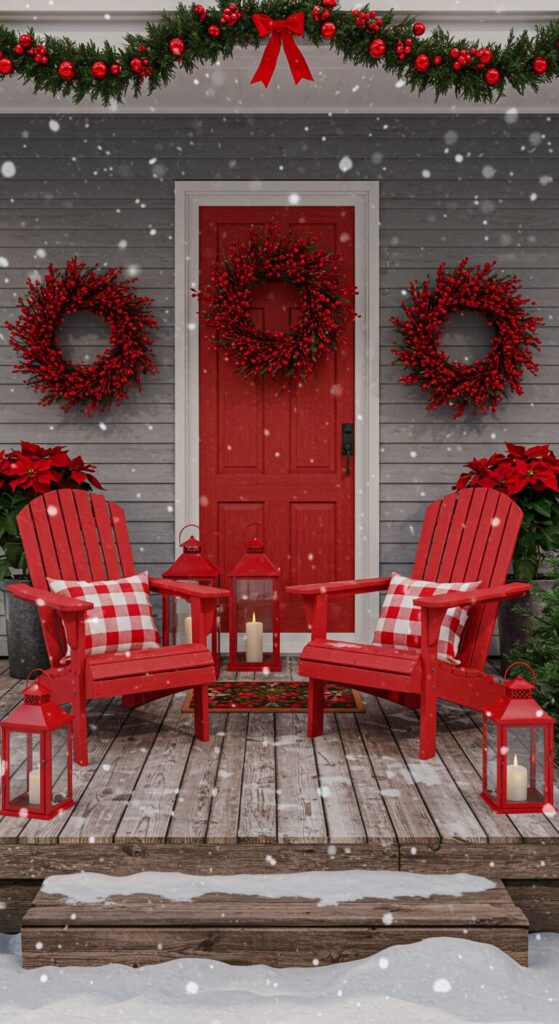 Drape red plaid scarves on seating, tying the dominant hue into every corner for unified cheer. Your entry radiates warmth, drawing in the holiday spirit effortlessly.