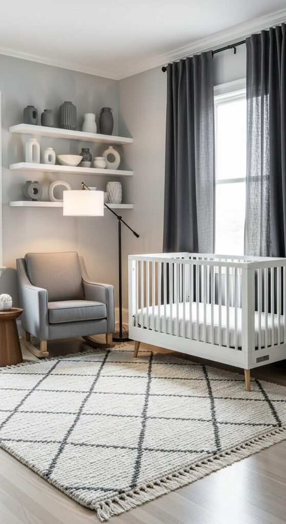 This combination feels grown-up and polished while remaining cozy. It’s an excellent choice for parents who want a nursery that doesn’t feel too baby-centric.